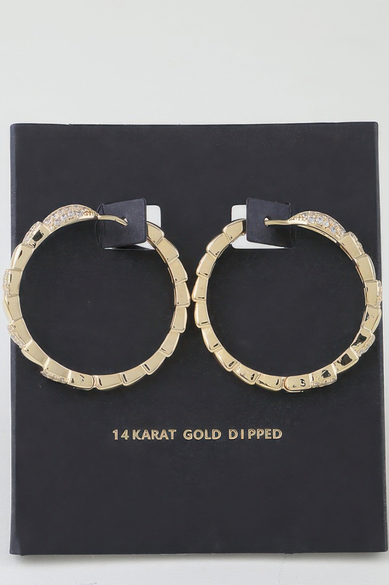 Make a bold impression with the Bejeweled Snake Scale Hoop Earrings. Featuring a textured scale-inspired design and shimmering embellishments, these hoops offer a glamorous twist on a classic shape. Lightweight and eye-catching, they’re perfect for day-to-night transitions.