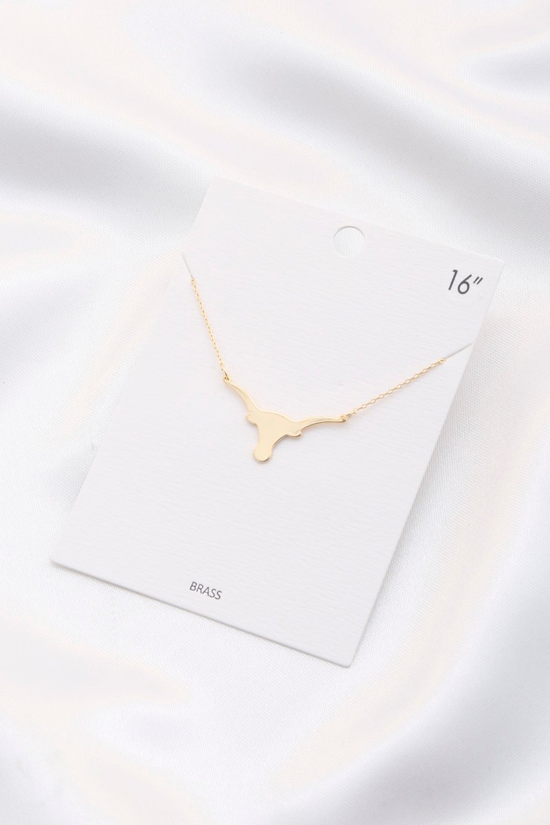 Elevate your accessory game with our Cattle Head Pendant Necklace, available in both Gold and Rhodium. This unique necklace effortlessly combines rustic charm with modern elegance, making it a versatile statement piece to enhance your style.Key Features:1. Material: Crafted with attention to detail, the Cattle Head Pendant Necklace features a distinctive design in high-quality metal, offering a blend of durability and style.2. Design: The pendant showcases a detailed cattle head, creating a rustic and eye-catching focal point that adds character to your ensemble.3. Color Options: Choose between the timeless allure of Gold or the sleek sophistication of Rhodium to suit your individual style.