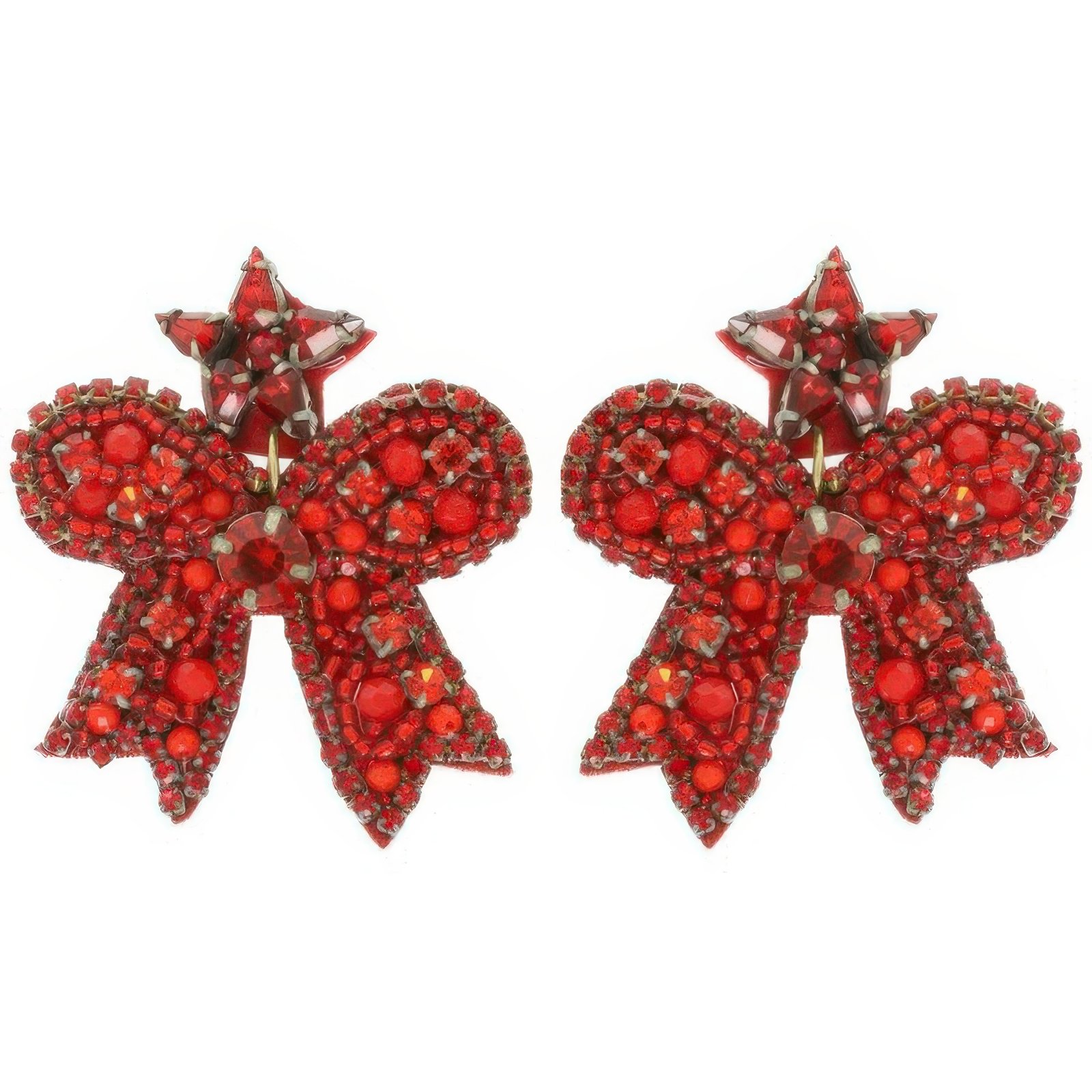 Seed beaded red bow with crystal accents Lightweight and comfortable for all-day wear Secure post-back fastening Eye-catching holiday sparkle perfect for Christmas gatherings Great for party hosts, performers, and festive fashion lovers