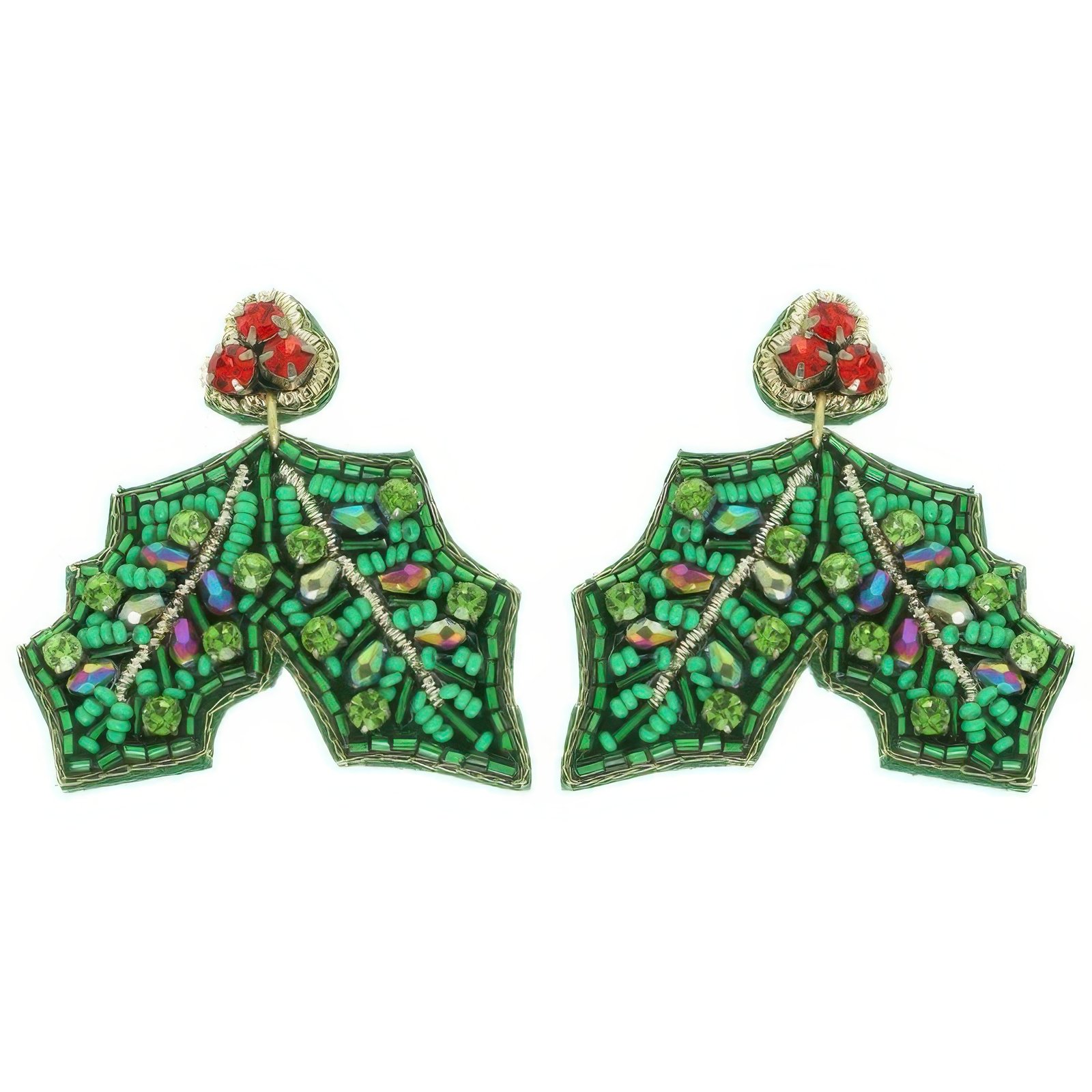 Crystal seed beaded mistletoe post dangle earrings Handcrafted with vibrant beading and festive design Dimensions: Height: 2″ Width: 2.15″ Lightweight for comfortable, all-day wear Great for holiday parties, photos, and seasonal events Ideal gift for friends, teachers, or Secret Santa