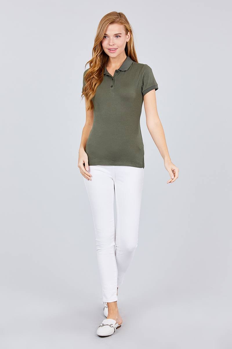 Classic Pique Spandex Polo Top