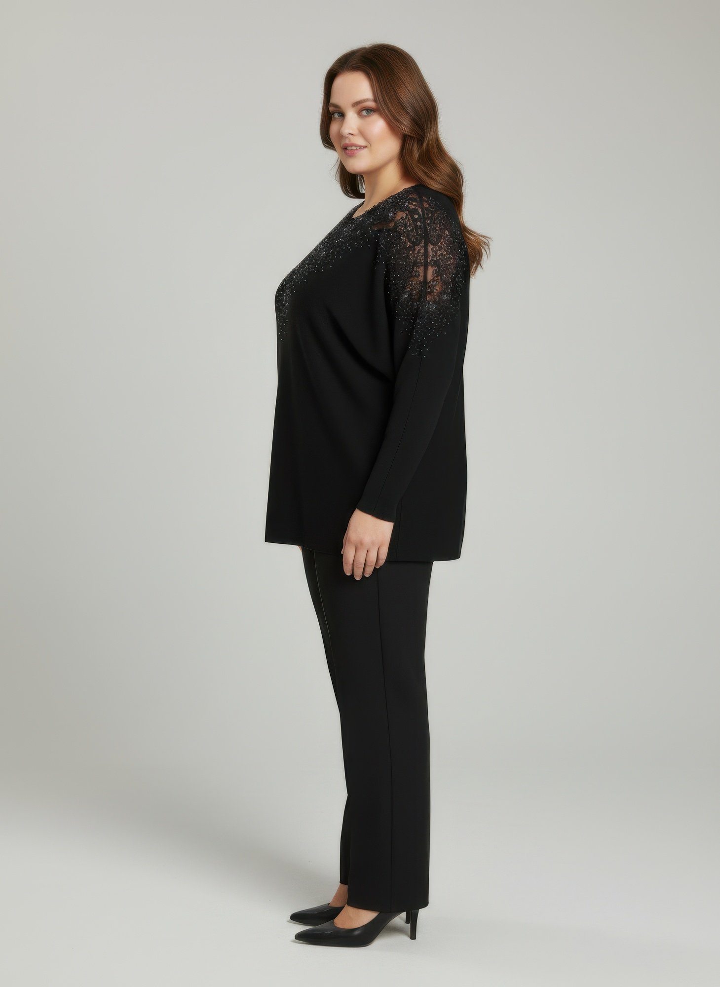 The Crimson Lace Embellished Knit Tunic Top combines graceful detailing with a bold, elegant color for a refined statement piece. Designed in a vibrant crimson red shade, this long sleeve tunic features a relaxed silhouette that drapes smoothly for both comfort and style. The soft knit fabric provides a comfortable feel while maintaining a polished appearance suitable for a variety of occasions. Intricate lace inspired embellishments adorn the neckline and upper chest, creating a beautifully detailed pattern that adds texture and subtle sparkle. The tunic length offers flattering coverage and pairs effortlessly with fitted pants or leggings. Perfect for gatherings, special occasions, or elevated everyday wear, this piece brings together sophistication, comfort, and standout style.