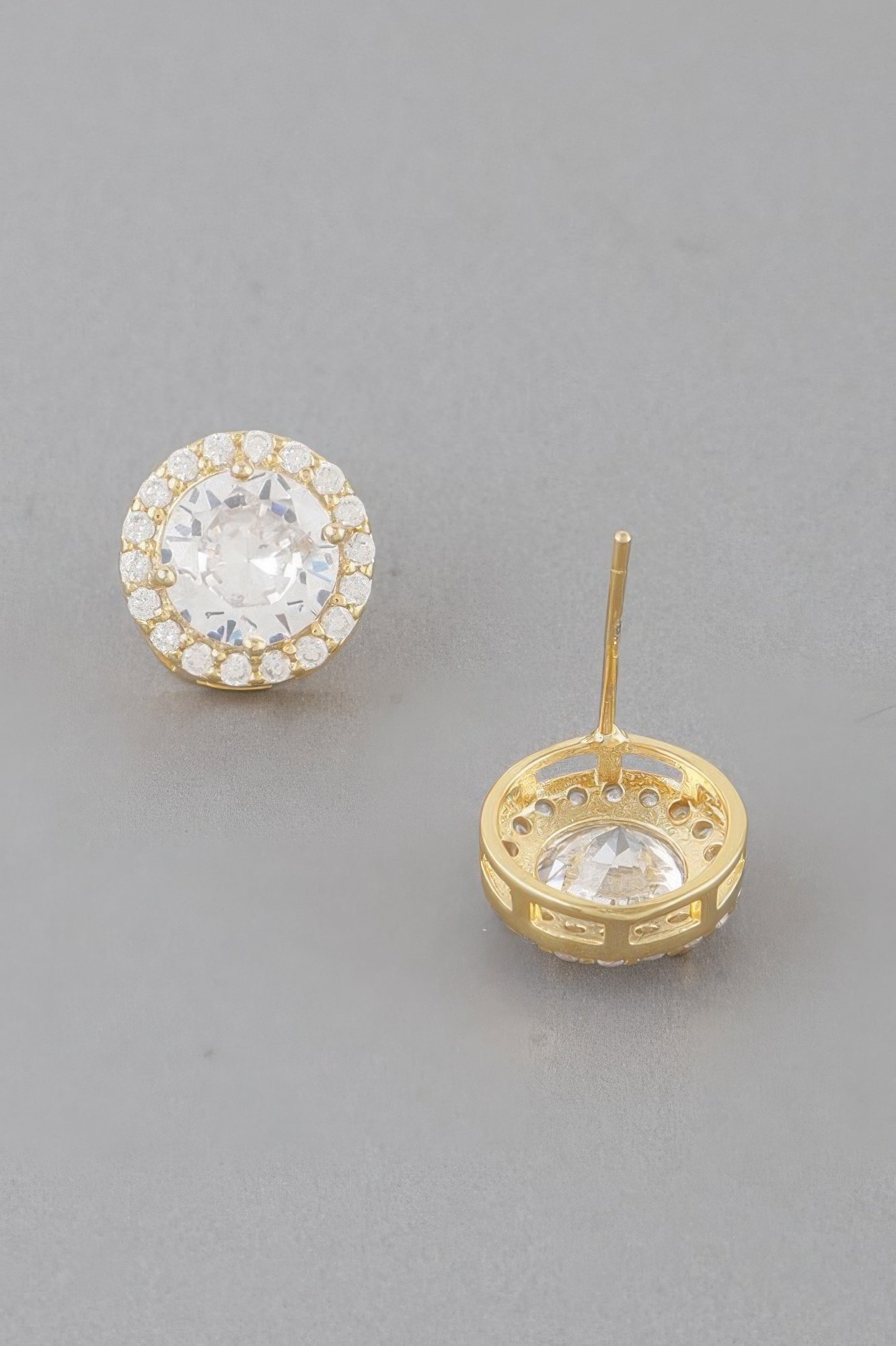Round stud earrings with embedded detailing Approximate size: 0.5 x 0.5 inches Compact and lightweight for comfortable wear Classic stud silhouette for everyday styling Subtle shine with a polished finish Versatile accessory suitable for various outfits