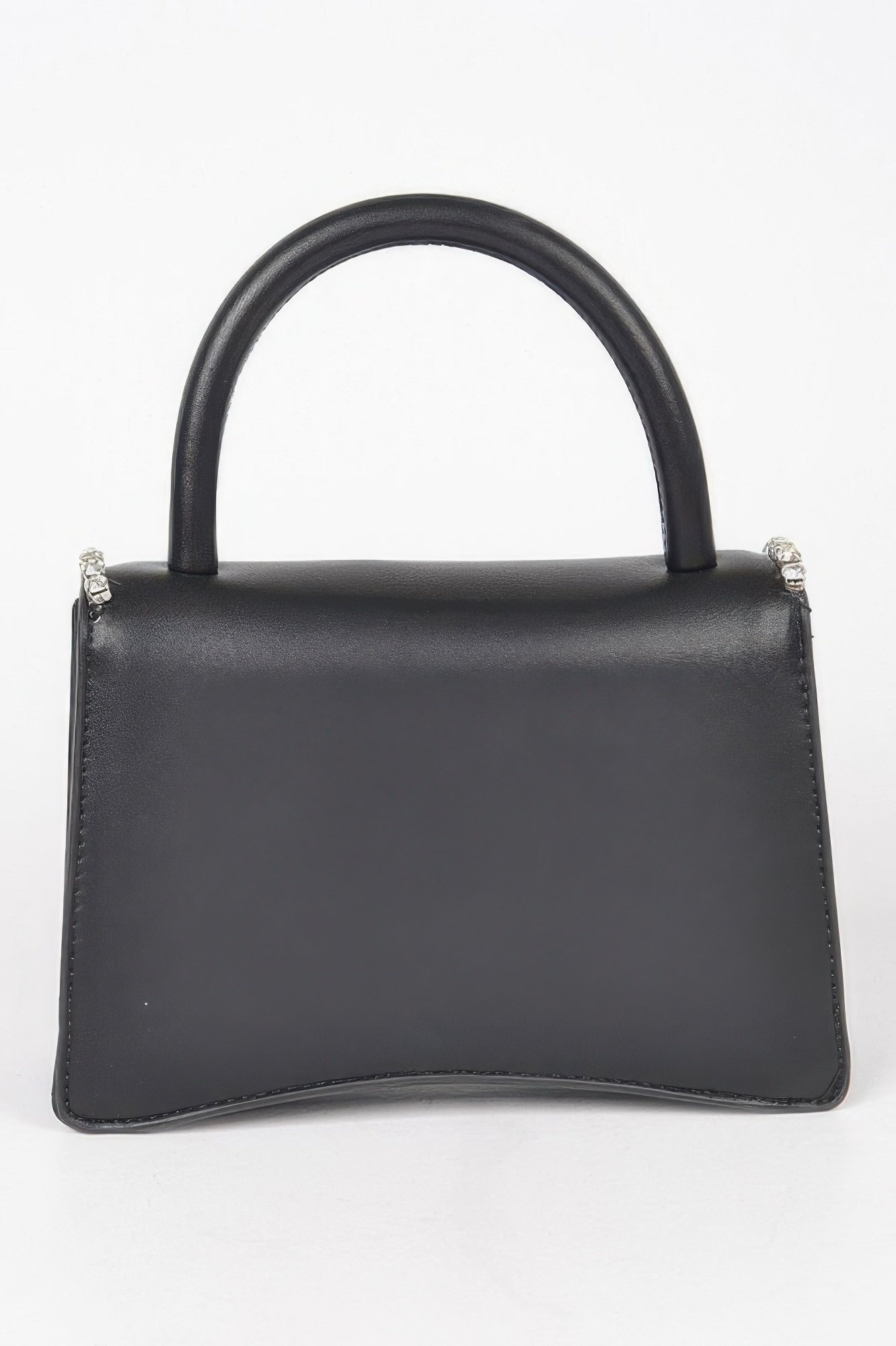 Faux Leather Top Handle Flap Bag W/rhinestone