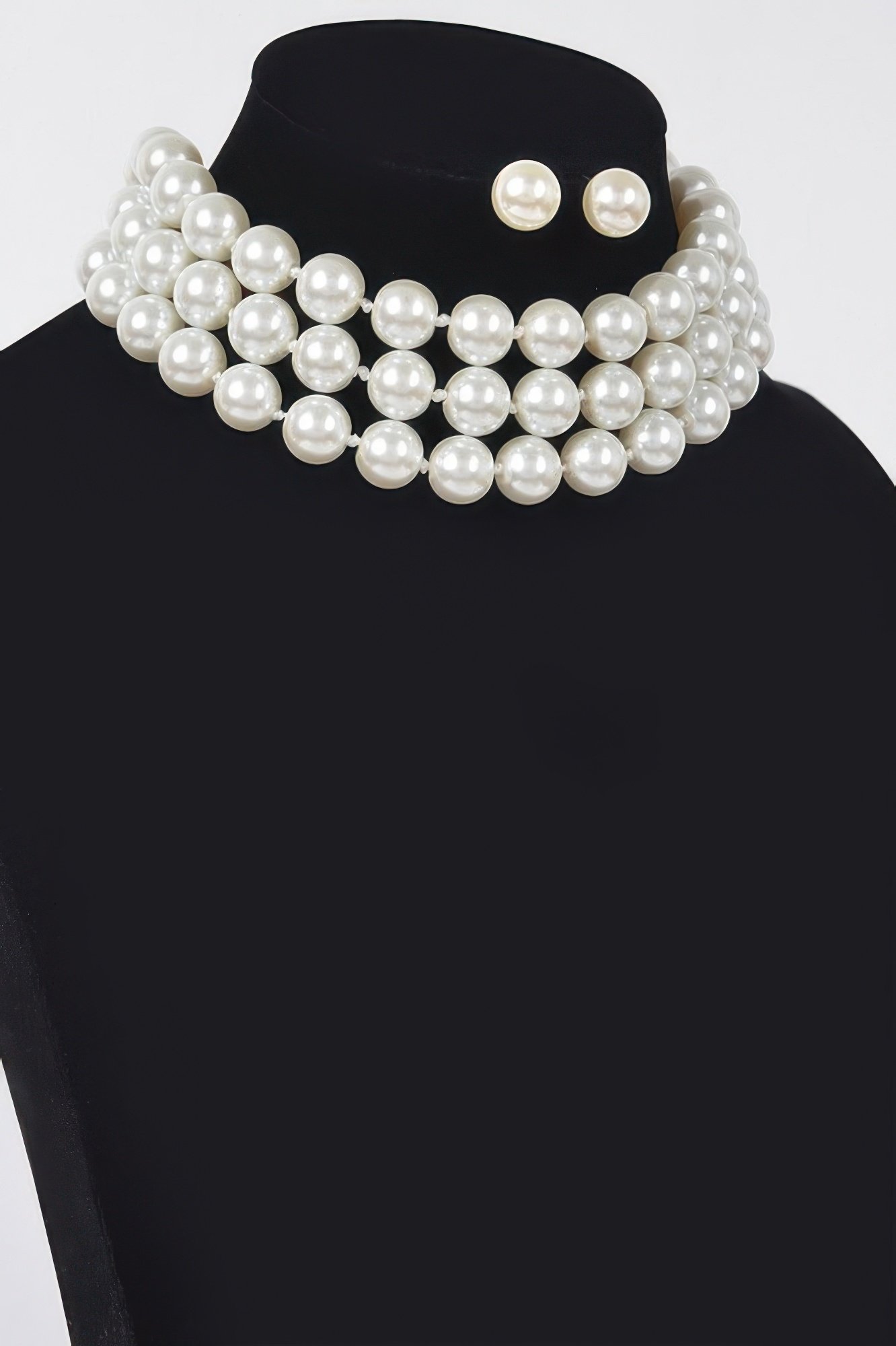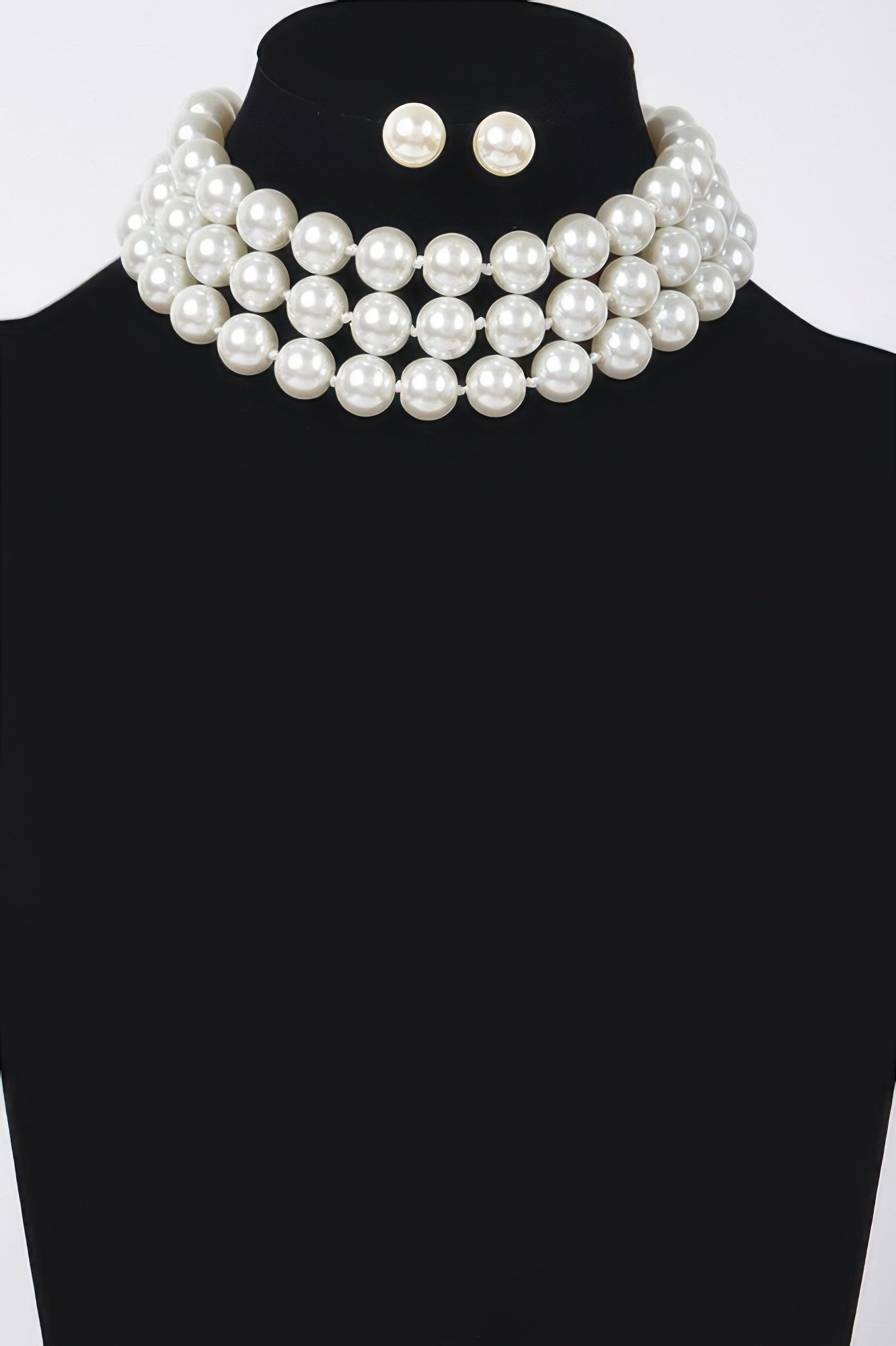 Faux pearl necklace with matching earrings Approx. necklace length: 14 inches Timeless design with elegant finish Ideal for formal or semi-formal occasions Lightweight and wearable all day Clasp closure for easy wear