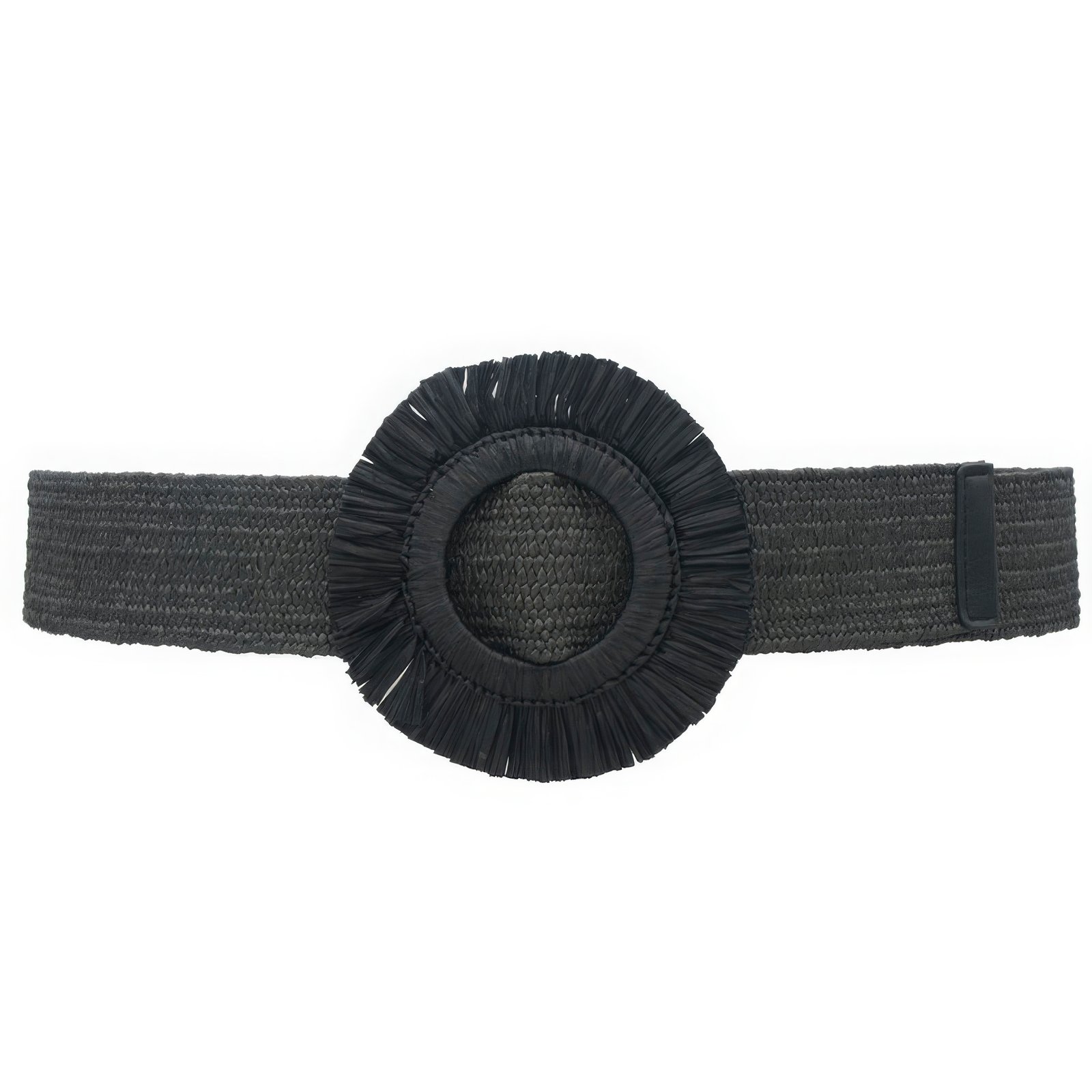 Introducing our Fringe Circle Straw Belt, available in four stylish colors: Cognac, Black, Red, and Natural. This belt features a unique design with fringe detailing and a circular straw buckle, combining bohemian charm with contemporary style.Key Features:- Design: Fringe detailing with a circular straw buckle for a distinctive look.- Width: 50 mm wide for a bold statement.- Colors: Available in Cognac, Black, Red, and Natural to suit your personal style.