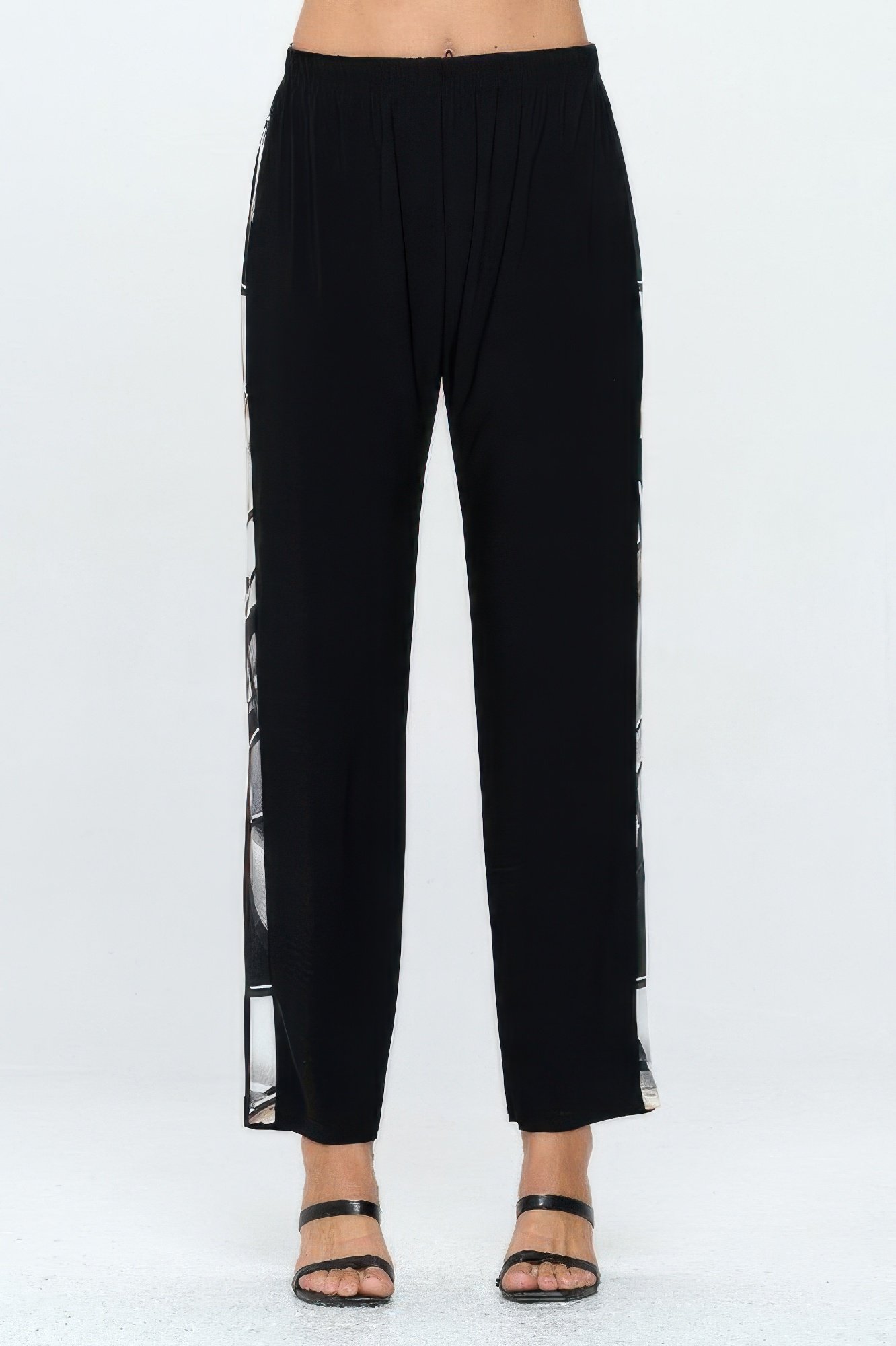These contrast straight-leg pants offer the perfect blend of structure and stretch. Designed with an elastic waistband, they provide an easy pull-on fit without sacrificing a tailored appearance. The straight-leg cut adds a polished finish, making them suitable for both casual and professional settings. Crafted from a soft polyester-spandex blend, they move comfortably with you throughout the day. Ideal for pairing with solid tops or coordinating pieces.