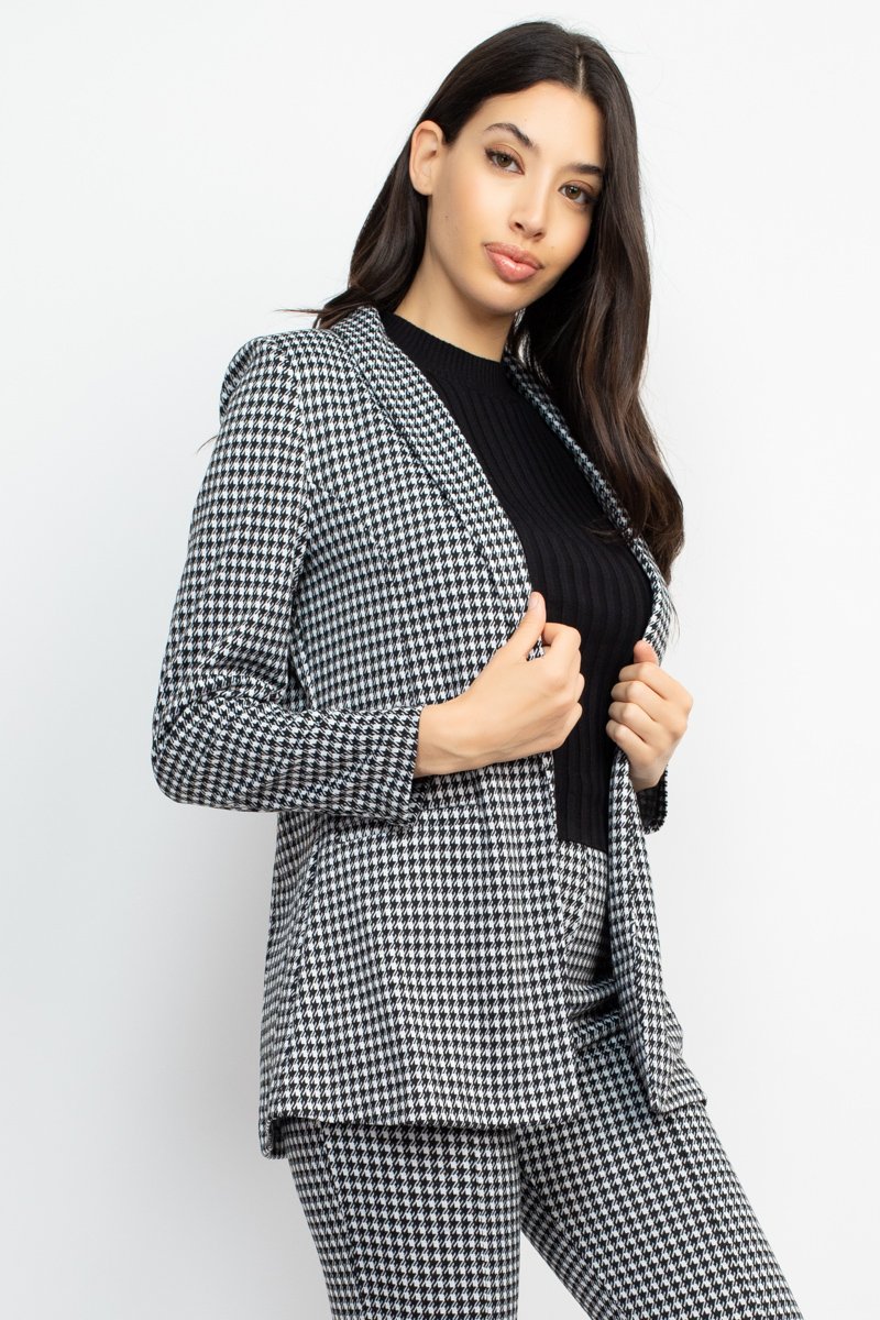 • Versatile Design: The houndstooth pattern and notch lapel add a touch of sophistication, making it suitable for both professional and casual occasions.• Long Sleeve: Stay stylish and comfortable with the long sleeves that provide coverage while adding a chic element to your outfit.