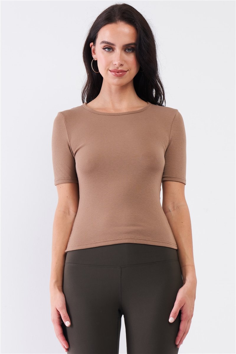 Upgrade your wardrobe with our Light Ribbed Crew Neck Short Sleeve Basic Tee—a versatile and comfortable addition suitable for various occasions. Available in sizes S, M, and L, this short sleeve tee features a solid mocha color, light ribbed construction, crew neckline, and a stretchy, unlined design for a casual and relaxed fit.Key Features:1. Material: Crafted from 95% Polyester and 5% Spandex, this basic tee offers a stretchy and comfortable feel, perfect for sportswear, activewear, or lounge wear.2. Sizes: Available in S, M, and L to ensure a perfect fit for different body types.3. Design: The light ribbed construction adds a subtle texture to the solid mocha color, creating a stylish yet casual look.4. Neckline: Features a classic crew neckline for a timeless and versatile style.5. Fit: Regular fit for a comfortable and relaxed silhouette.6. Unlined: The tee is unlined, ensuring breathability and ease of movement.