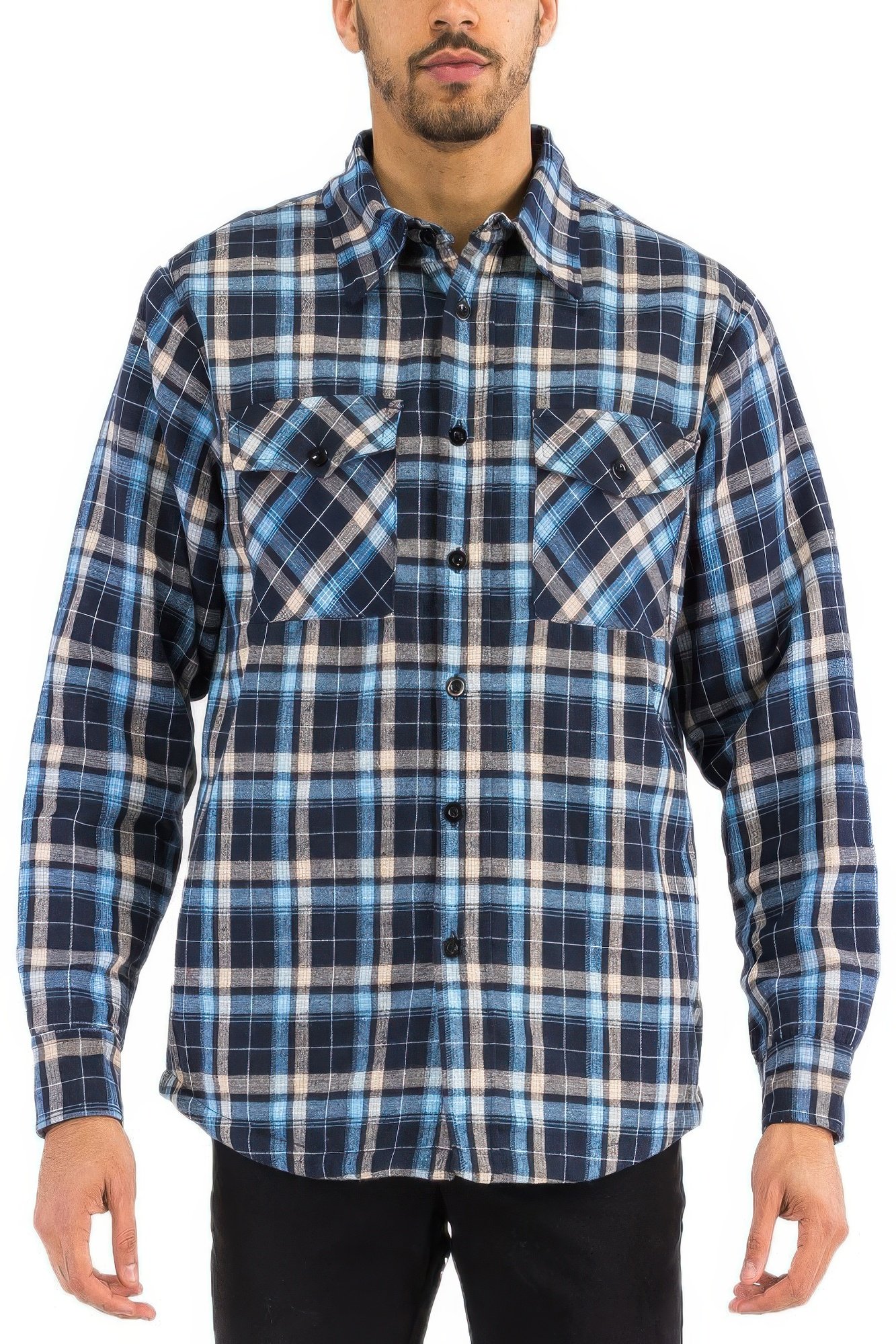 Comfortable All-Day Wear: The quilted polyester lining ensures warmth, while the breathable cotton blend exterior keeps you comfortable throughout the day. Quality Craftsmanship: Designed with attention to detail, this flannel is carefully crafted for durability and long-lasting wear. Practical Pockets: Original angled chest pockets with snap closures offer convenient storage, while standard side pockets keep your hands warm when needed.