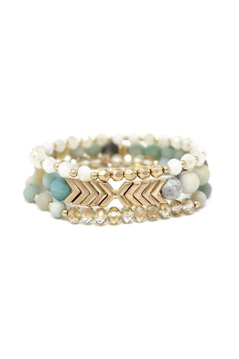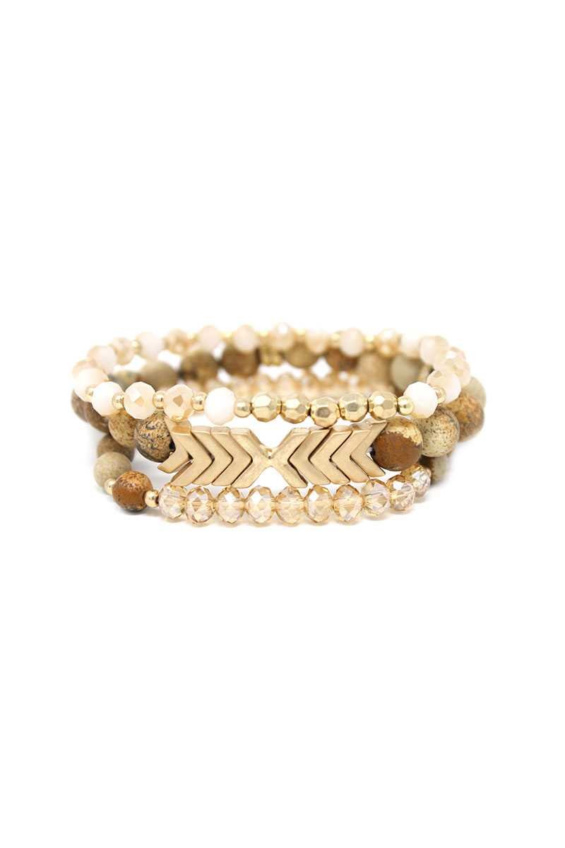 Natural Stone Glass Bead Stretch Multi Bracelet 3 Pc Set