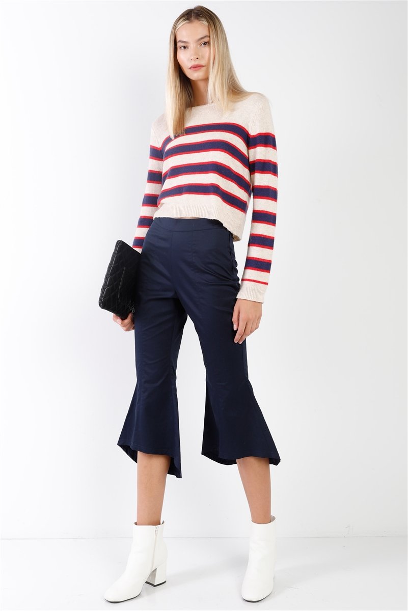 Navy Solid High Waisted Retro Bell Bottom Flare Pants