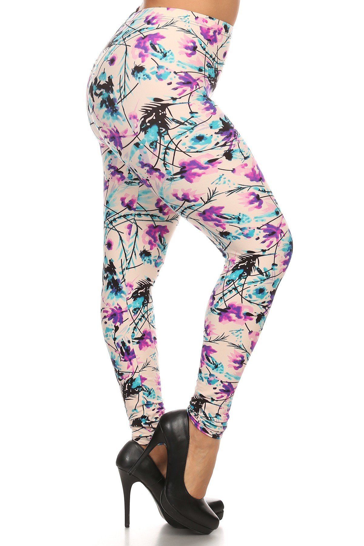 Plus Size Floral Print, Full Length Leggings In A Slim Fitting Style With A Banded High Waist