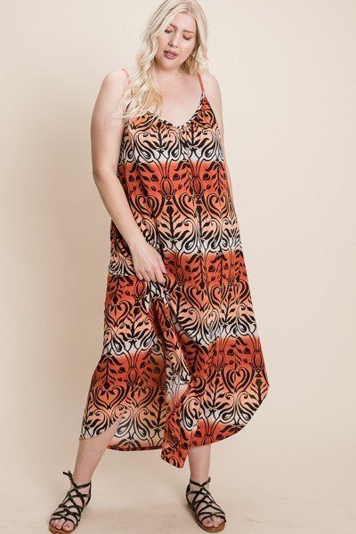 Plus Size Tie Dye Ombre Damask Print Anna Print Cami Maxi Dress