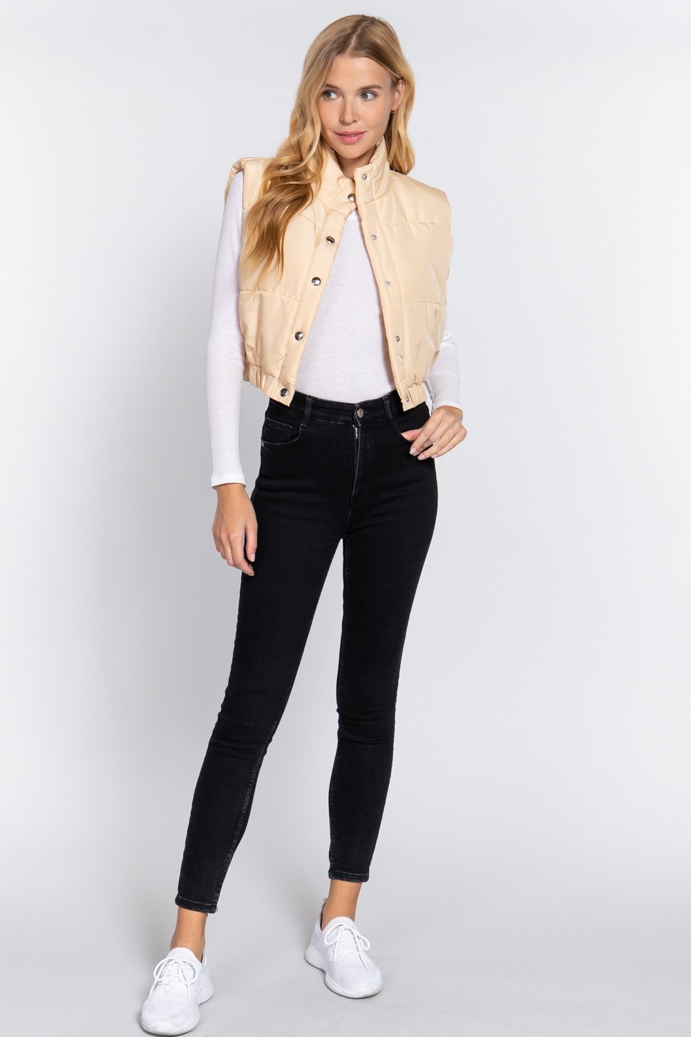 Elevate your winter wardrobe with our Puffer Padding Vest, a versatile and stylish addition designed to keep you warm while maintaining a chic aesthetic. Carefully crafted with attention to detail, this vest offers both comfort and a contemporary edge.Key Features:1. Fabric: Embrace the warmth and durability of 100% polyester, ensuring a cozy and insulated feel during colder days.2. Fit: Enjoy the flattering fit of our Puffer Padding Vest, designed to complement various body types and provide ease of movement.3. Color Options: Choose the understated elegance of Taupe, a versatile hue that effortlessly pairs with a range of outfits.4. Sizes: Available in S, M, and L sizes, ensuring a tailored fit for your unique preferences.5. Design: The puffer padding adds a modern touch, providing both style and extra insulation for chilly weather.6. Versatile Styling: Perfect for layering, this vest effortlessly elevates your outfit for both casual and outdoor activities.
