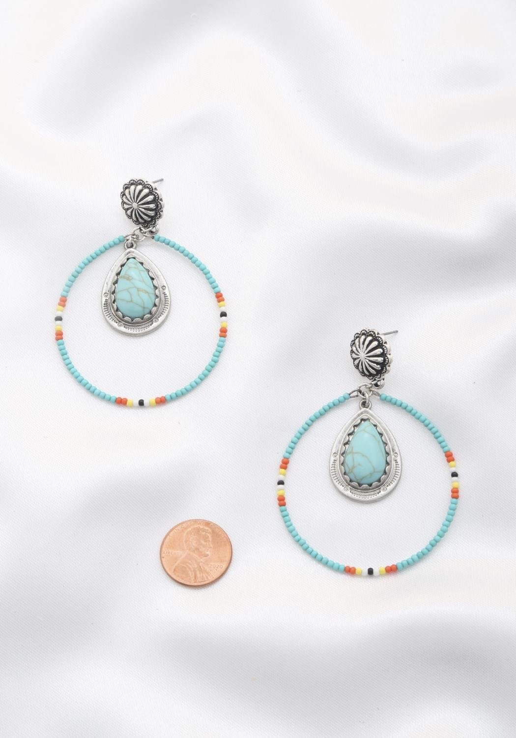 • Turquoise Elegance: The turquoise stone imparts a bold and vibrant elegance to the earrings.• Western Motifs: The design captures the spirit of the rodeo and Western style, creating a unique and eye-catching accessory.