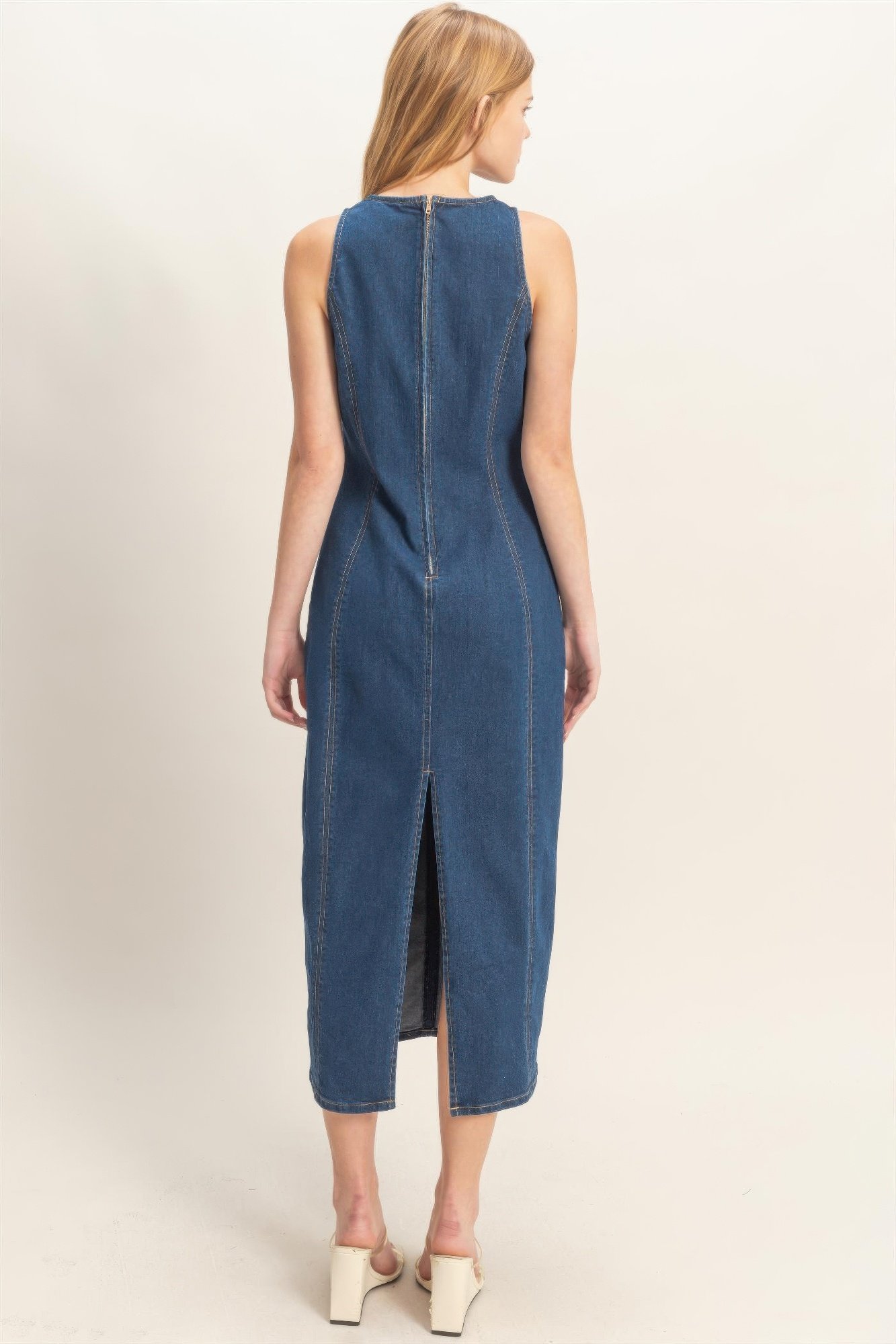 Sleeveless Denim Midi Dress