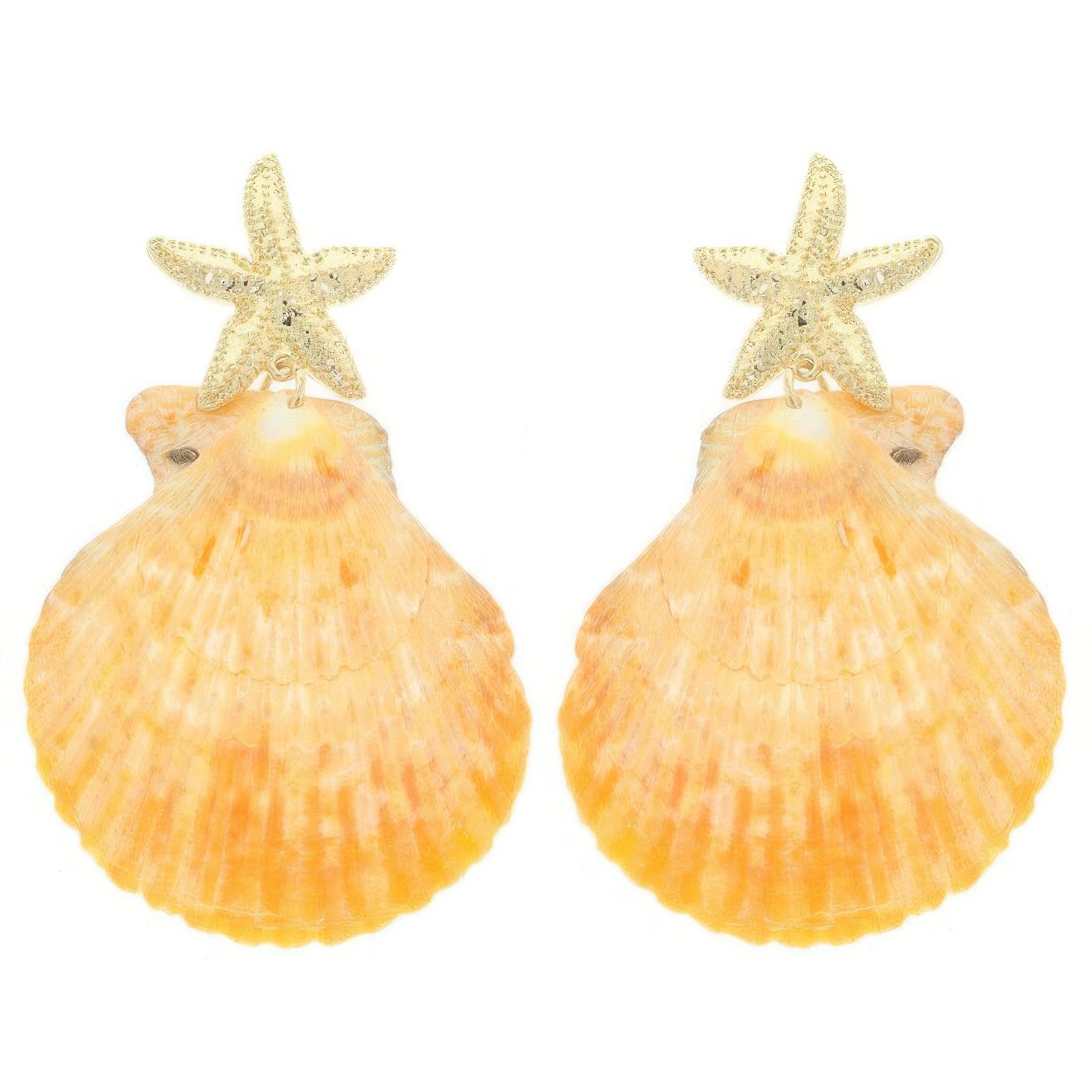 Embrace seaside charm with the Starfish Scallop Shell Post Dangle Earrings. Featuring colorful coastal motifs in a lightweight design, these earrings capture the spirit of summer and ocean getaways. Their oversized silhouette and playful details make them a standout choice for beach vacations, poolside parties, or resort wear. Stylish and fun, they add a touch of tropical whimsy to any warm-weather look.
