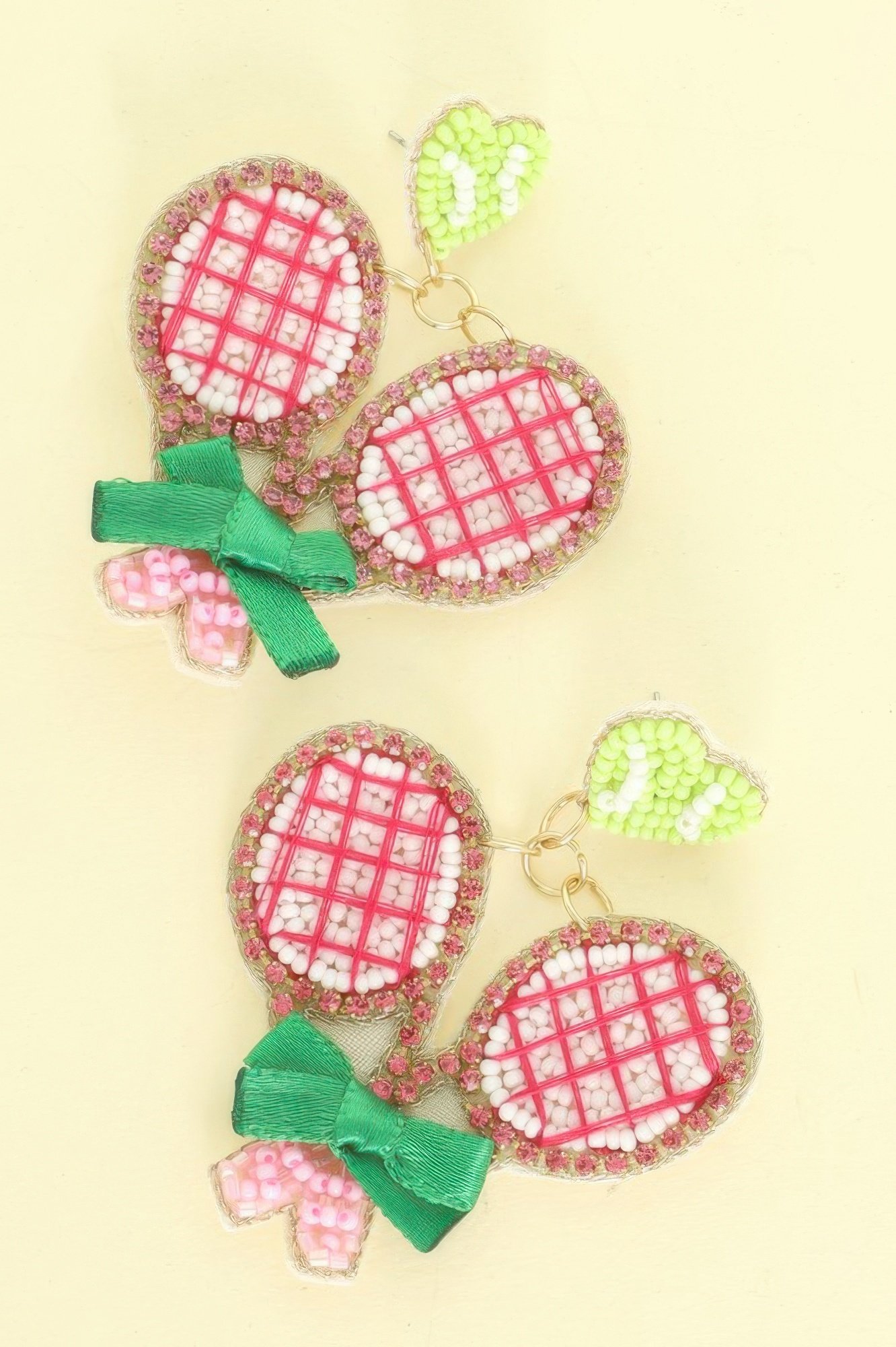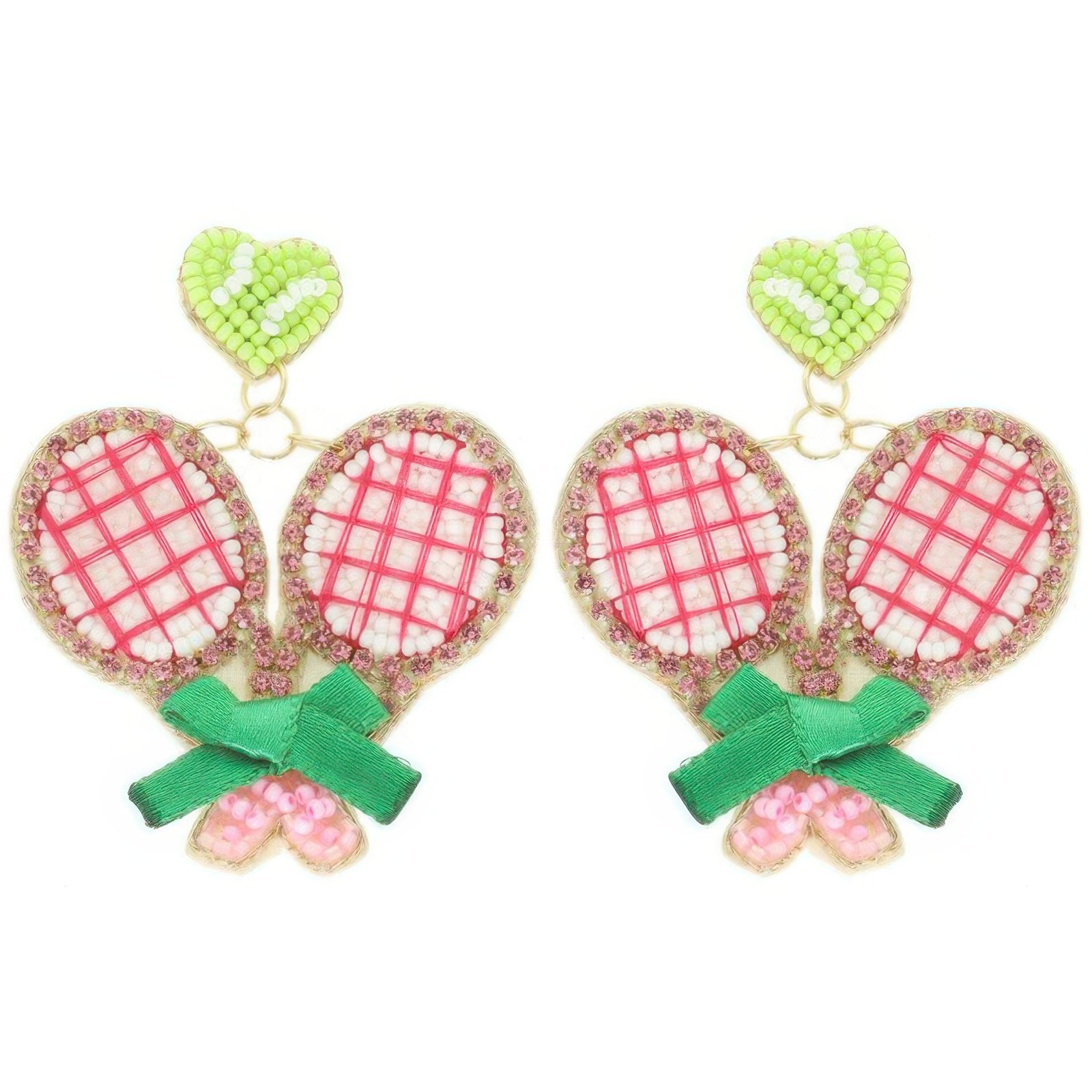 Add a playful twist to your game day look with the Tennis Set Theme Post Dangle Earrings. Embellished with sparkling crystal beads, this sporty pair showcases a charming tennis motif that’s both fun and fashionable. Lightweight and eye-catching, these earrings are perfect for tennis matches, social gatherings, or casual outings with a hint of flair. Designed for sports fans with style, they bring a spirited touch to your accessory game. Whether you’re on the court or in the stands, these earrings serve up fashion and fun.