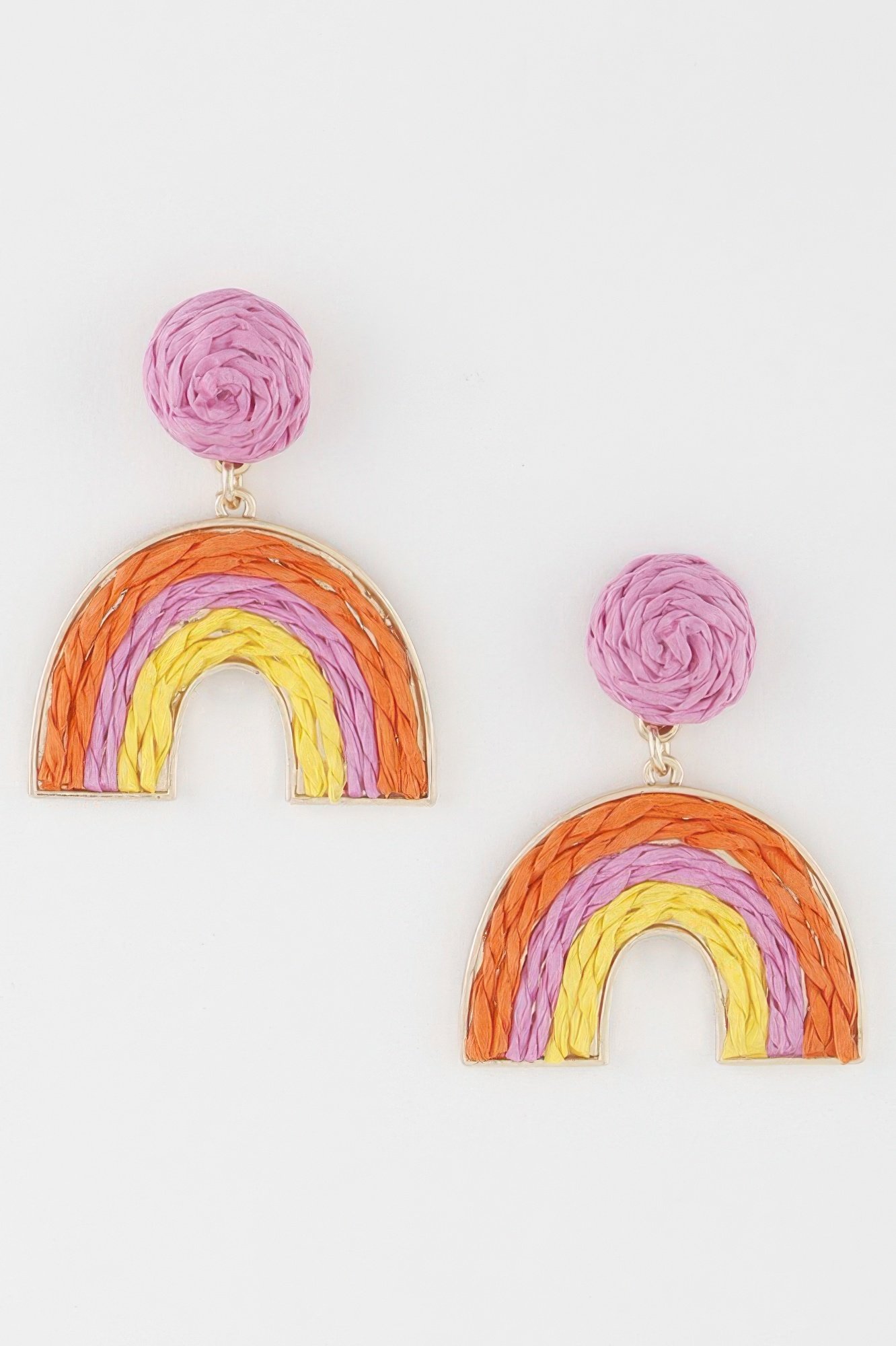 Triple twisted arc design with rainbow-inspired styling Approximate size: 1.2 x 1.8 inches Lightweight design for comfortable wear Dimensional structure with layered twist detail Eye-catching accessory for both casual and dressy outfits Unique statement earrings with modern styling