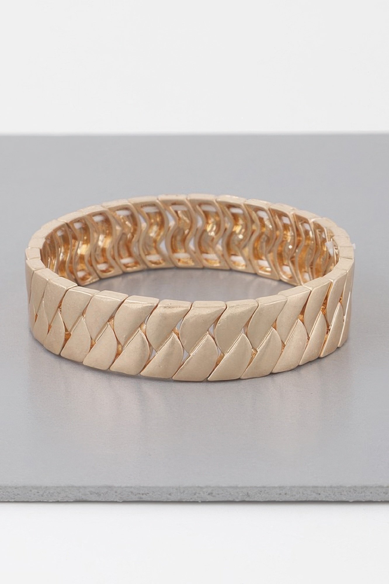 Two-tone curb chain cuff design Approximate size: 2.4 x 2.4 inches Open cuff silhouette for easy wear Structured and dimensional finish Suitable for everyday and statement styling Store in a dry place to preserve finish