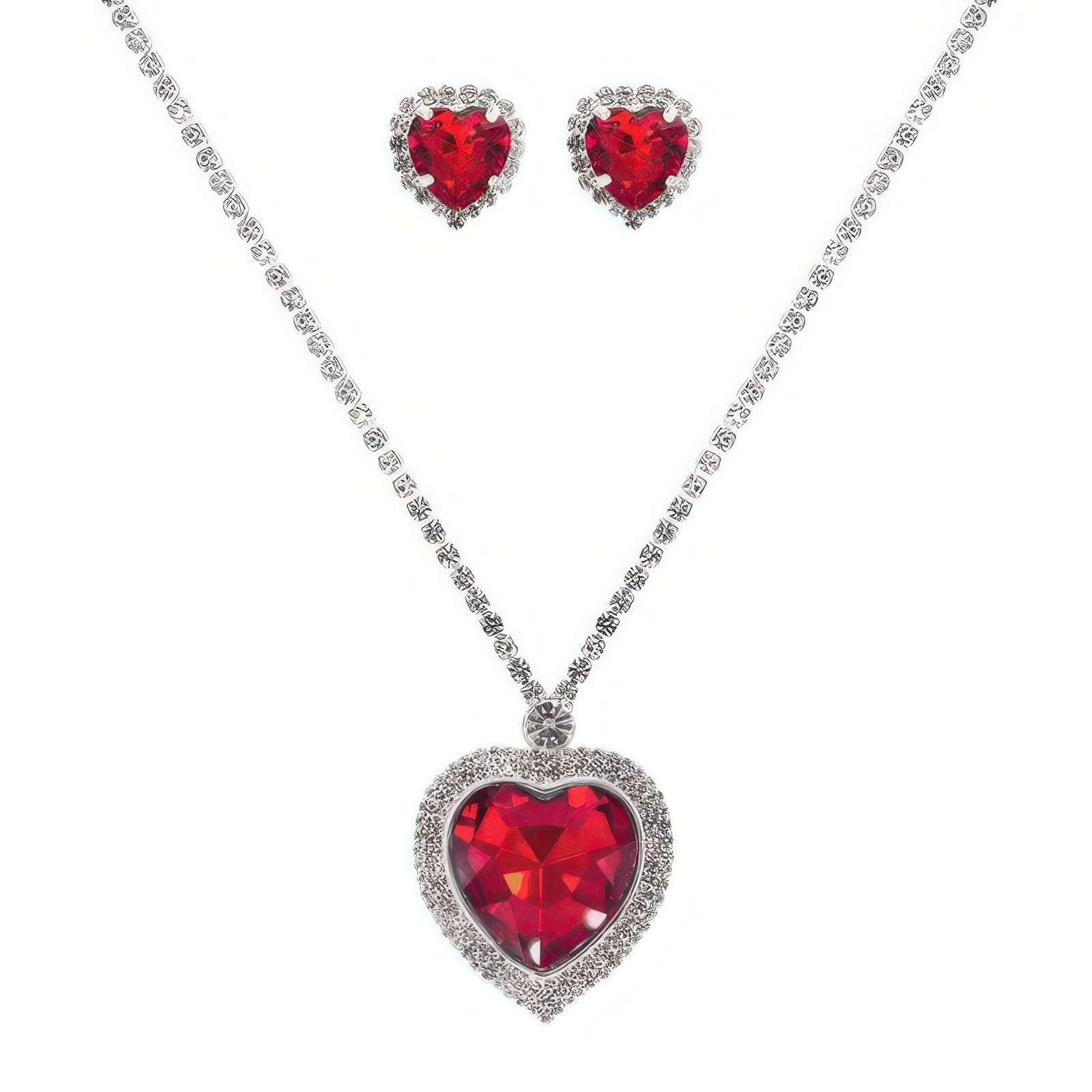 Heart-shaped crystal gemstone pendant Adjustable 18″ necklace with 3″ extension Matching 0.65″ stud earrings Lightweight and easy to wear Ideal for Valentine’s Day, anniversaries, or gifting