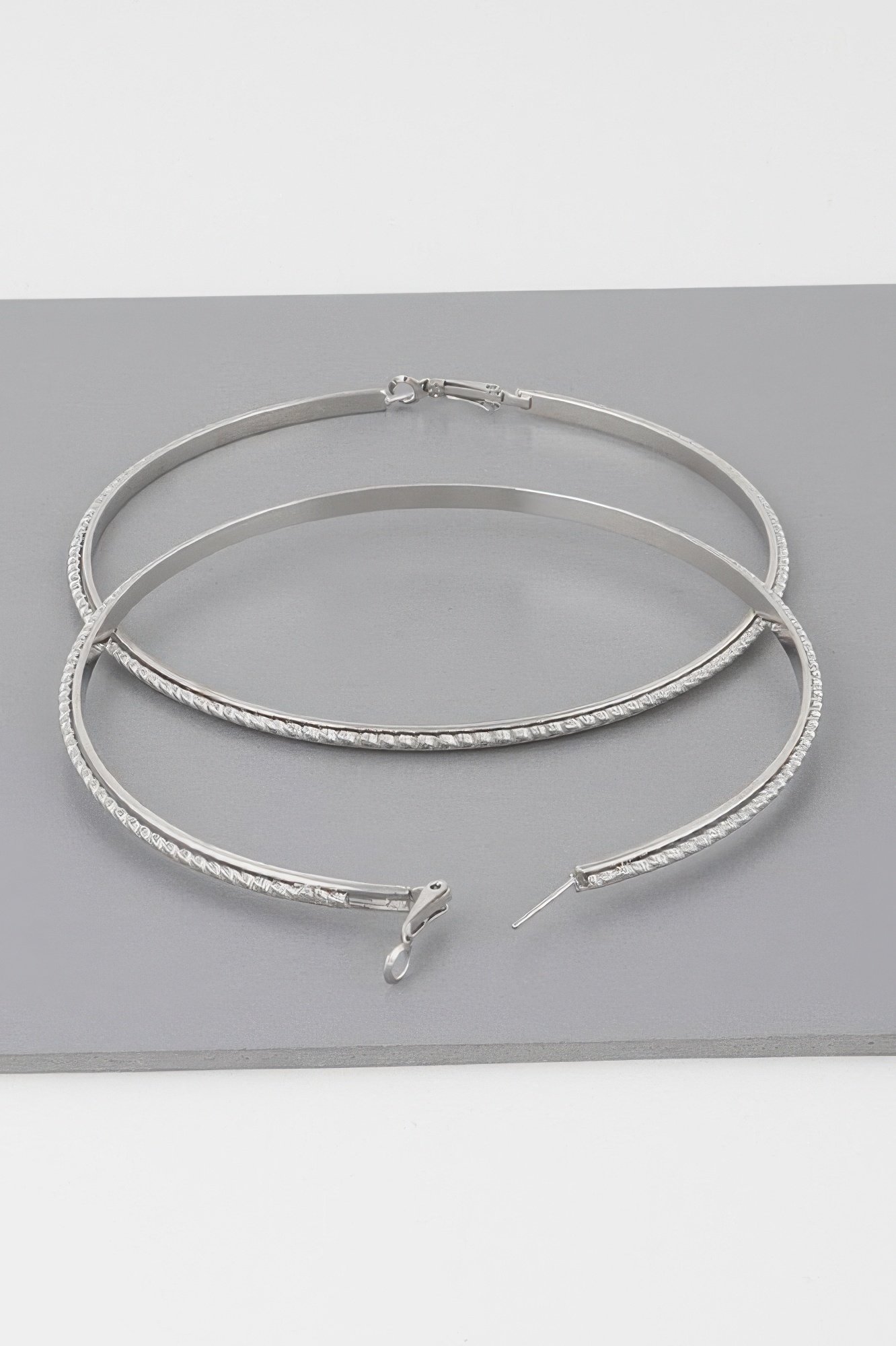 Oversized hoop earrings with double twist detail Approx. size: 3.8″ x 3.8″ Sculptural silhouette with polished finish Lightweight design for all-day wear Bold yet versatile styling Post back closure for secure fit